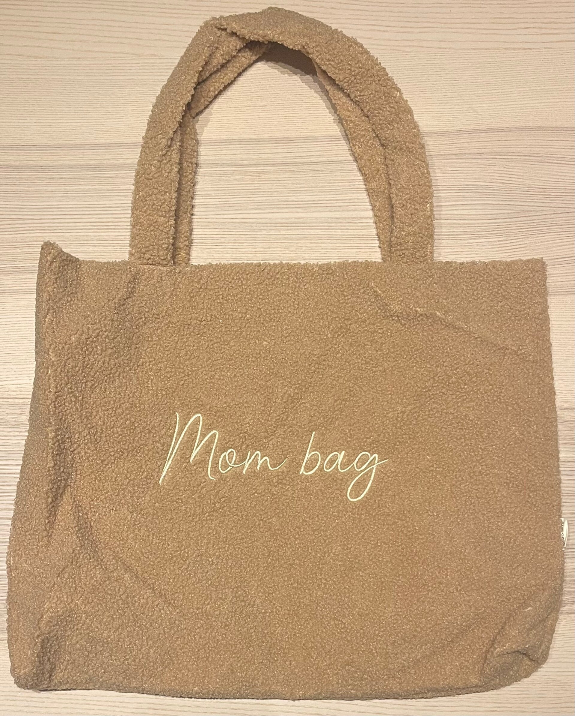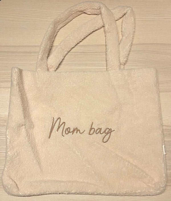 Teddy shopper met geborduurd opschrift "mom bag"