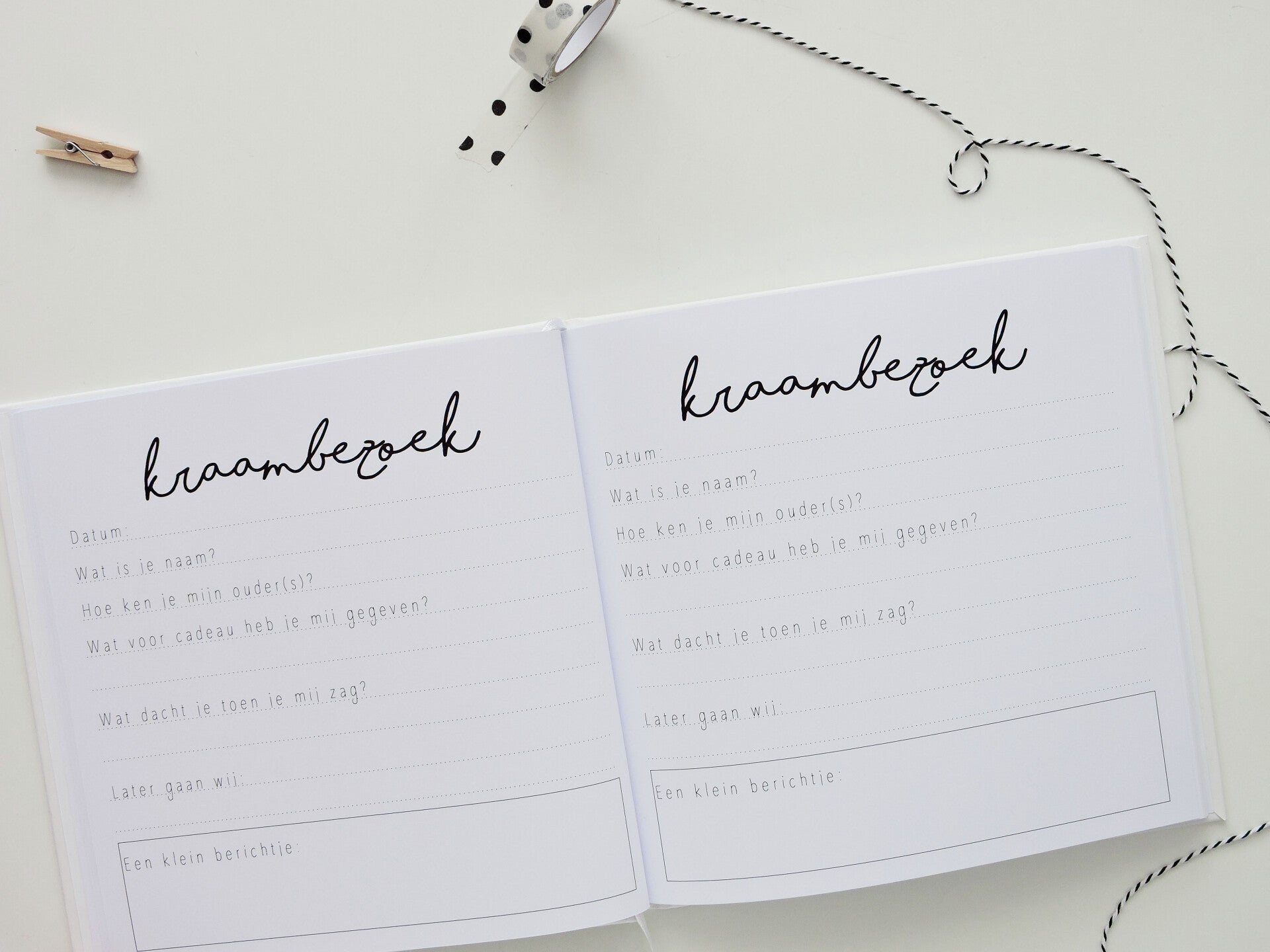 Een prachtig boek met invulblaadjes die iedereen die op bezoek komt kan invullen. Een mooie herinnering voor later.