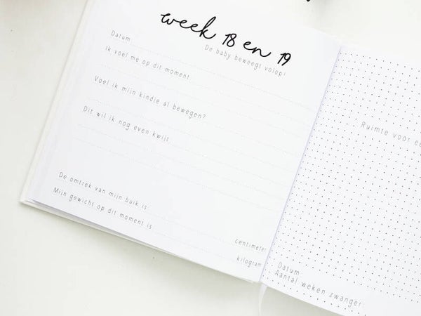 Een prachtig boek om jouw zwangerschap mooi bij te houden. Met ruimte voor foto's, gevoelens, een geboorteplan en zoveel meer.